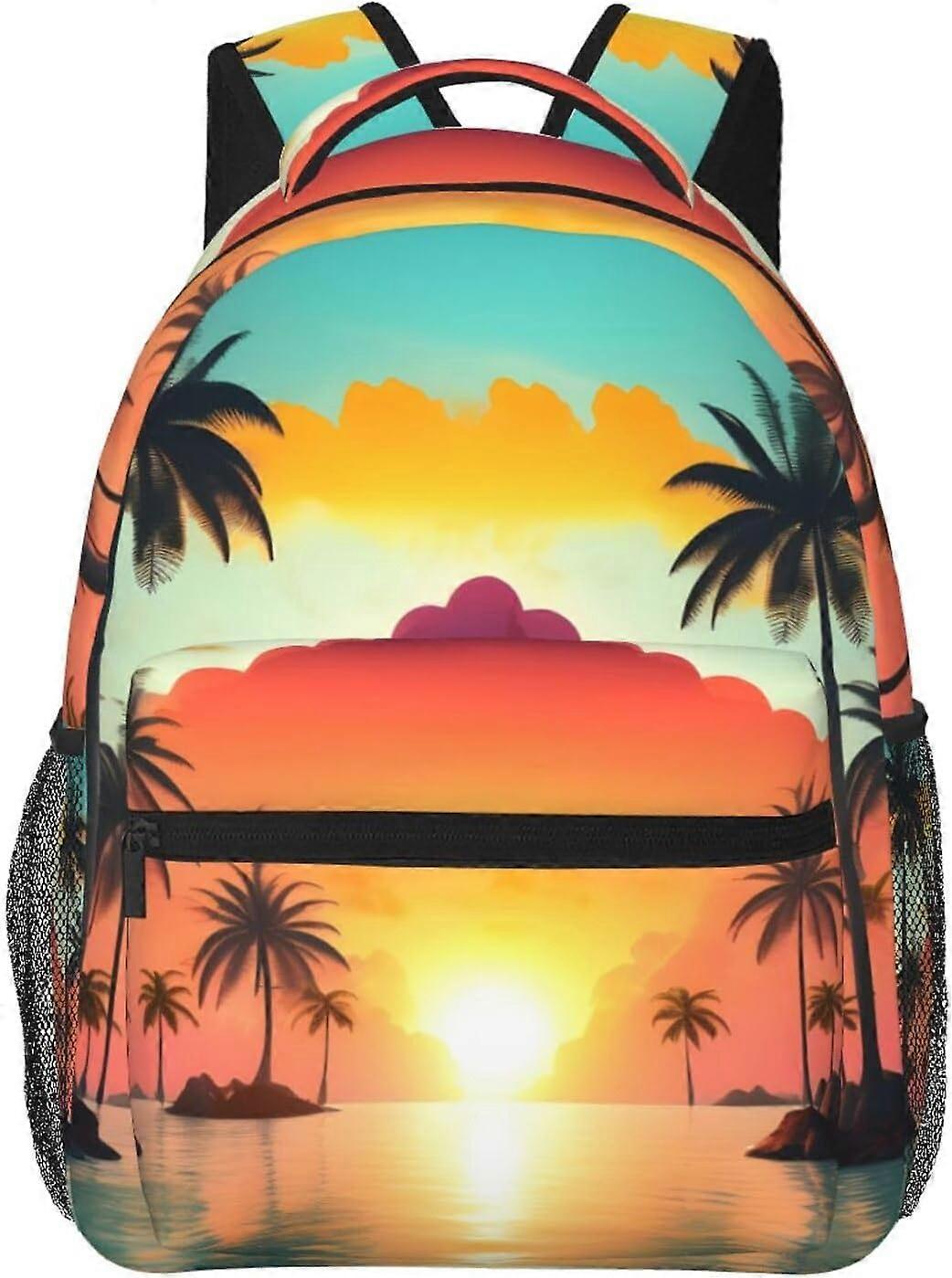 Sunrise Tropical Palm Tree Island print Lightweight Bookbag Casual Laptop Backpack for Men Women College backpack