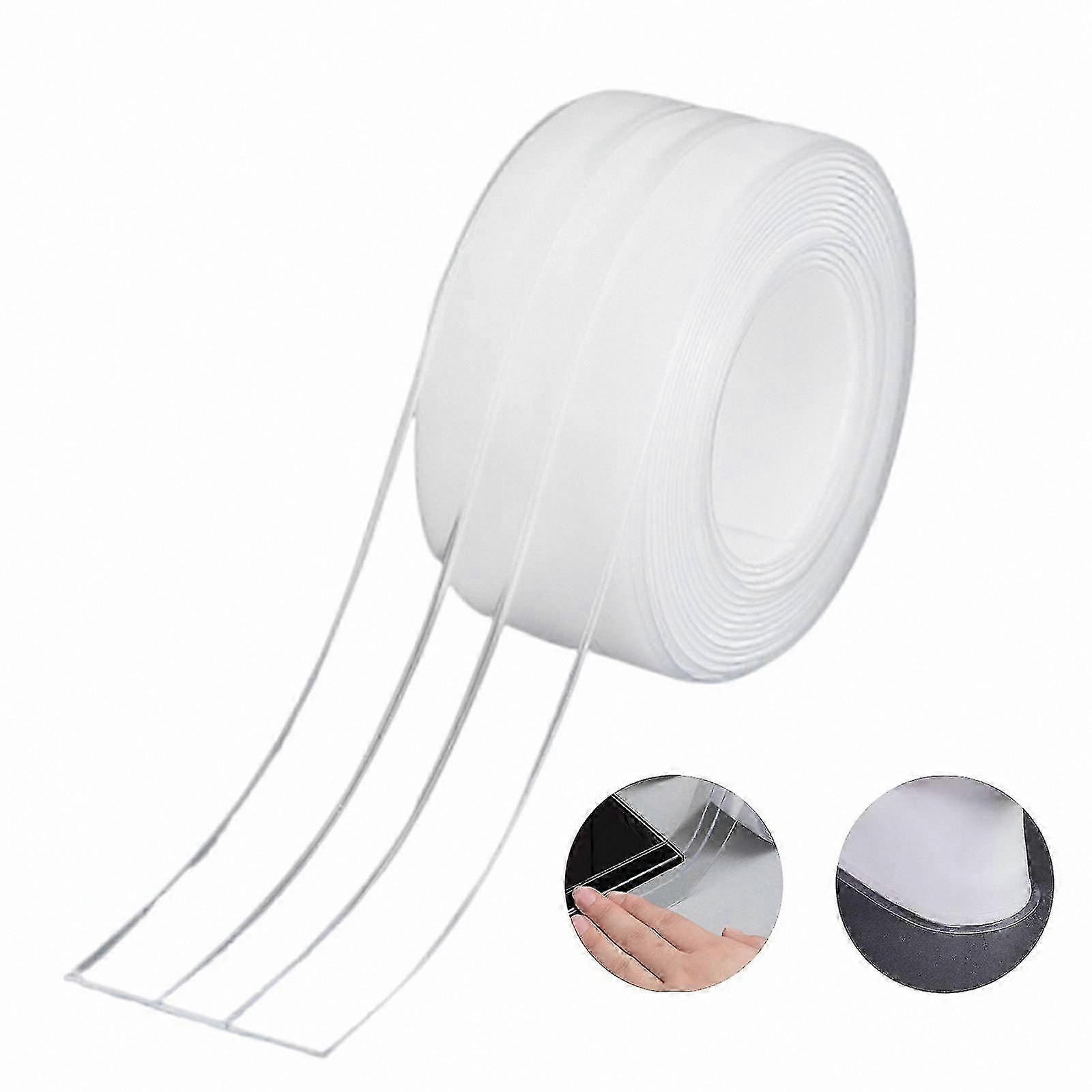 BATH SEALANT STRIP: Sealing strip (PE 38mm-3.2m). Environmentally friendly and non-toxic, designed for household use. Double layer construction, ideal for sinks and hobs. HIGH-QUALITY MATERIAL: Made of PE material, waterproof, mildew resistant, acid and alkali resistant, corrosion resistant, and heat resistant. EASY TO USE: Clean and dry the surface thoroughly. Peel and press the self-adhesive tape onto the surface. For best results, use a hair dryer to warm the tape during application. WIDELY USED: Suitable for sealing around kitchens, toilets, shower rooms, wall corners, restrooms, bathtub edges, and more. Pre-scored line ensures precise and uniform placement. Features strong, waterproof adhesive for reliable hold. SATISFACTION GUARANTEED: Designed to deliver durable, long-lasting performance. If you have any questions, feel free to reach out for assistance. Caulk tape offers high quality and reliability. Unlike standard PVC alternatives, PE tape is more durable, waterproof, and heat resistant. Provides a clean, professional seal that resists water infiltration, prevents mold and mildew, and achieves a finished look in minutes. Material: Silicone and PE Caulking Strip Size: 3.2m x 38mm (L x W) Color: Transparent Quantity: 1 Pack Note: 1. Thoroughly clean the surface and ensure it is dry. Remove any existing silicone caulk before installation. 2. Warm the tape with a hair dryer before application to enhance adhesion. 3. Can be applied to smooth, flat surfaces such as tile, marble, glass, and painted wood. 4. Recommended for installation at temperatures above 25°C for optimal adhesion. 5. Press firmly after installation. Allow approximately 8–10 hours before regular use.