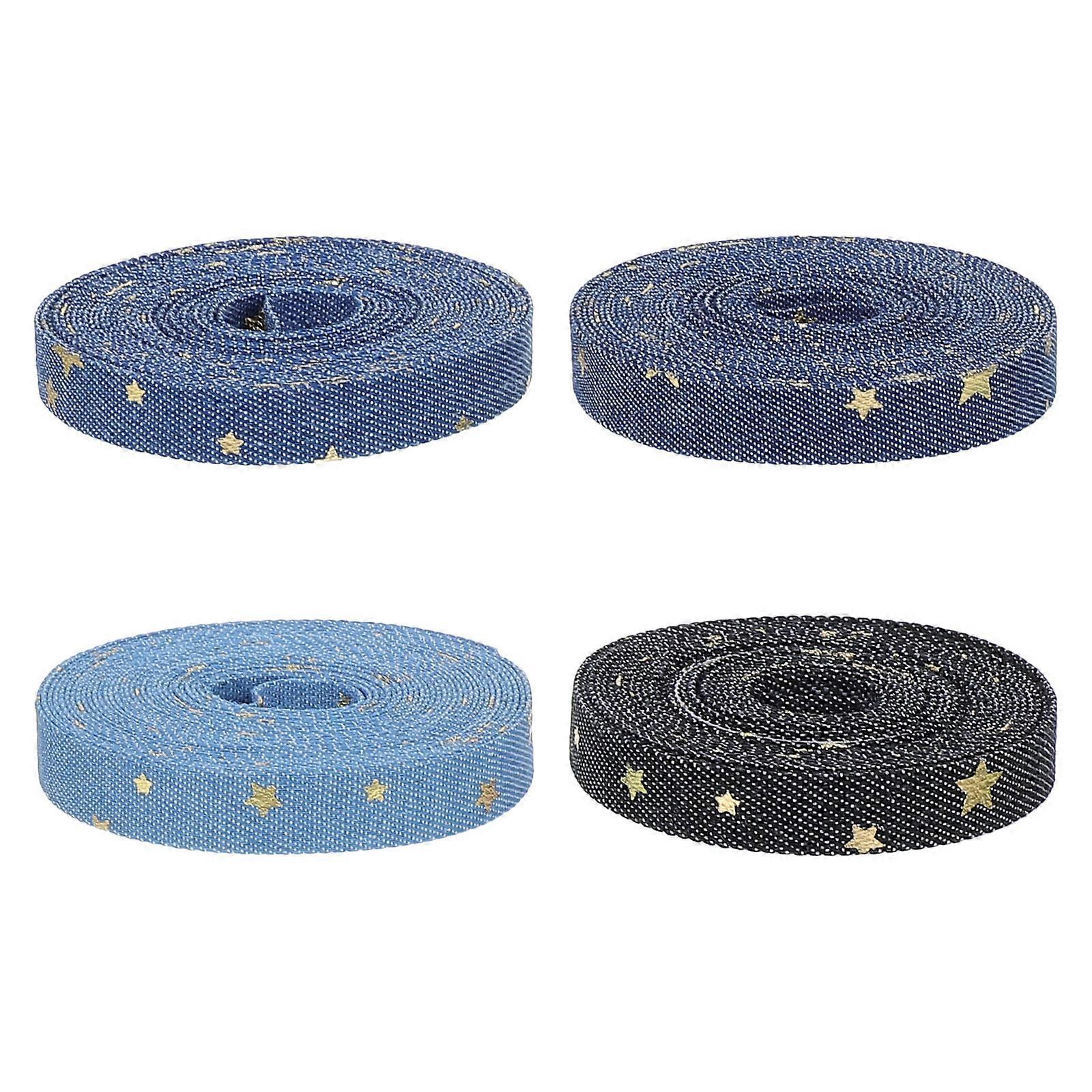 Denim Fabric Ribbon for Crafts with Gold Star Print 4 Rolls for Sewing Projects