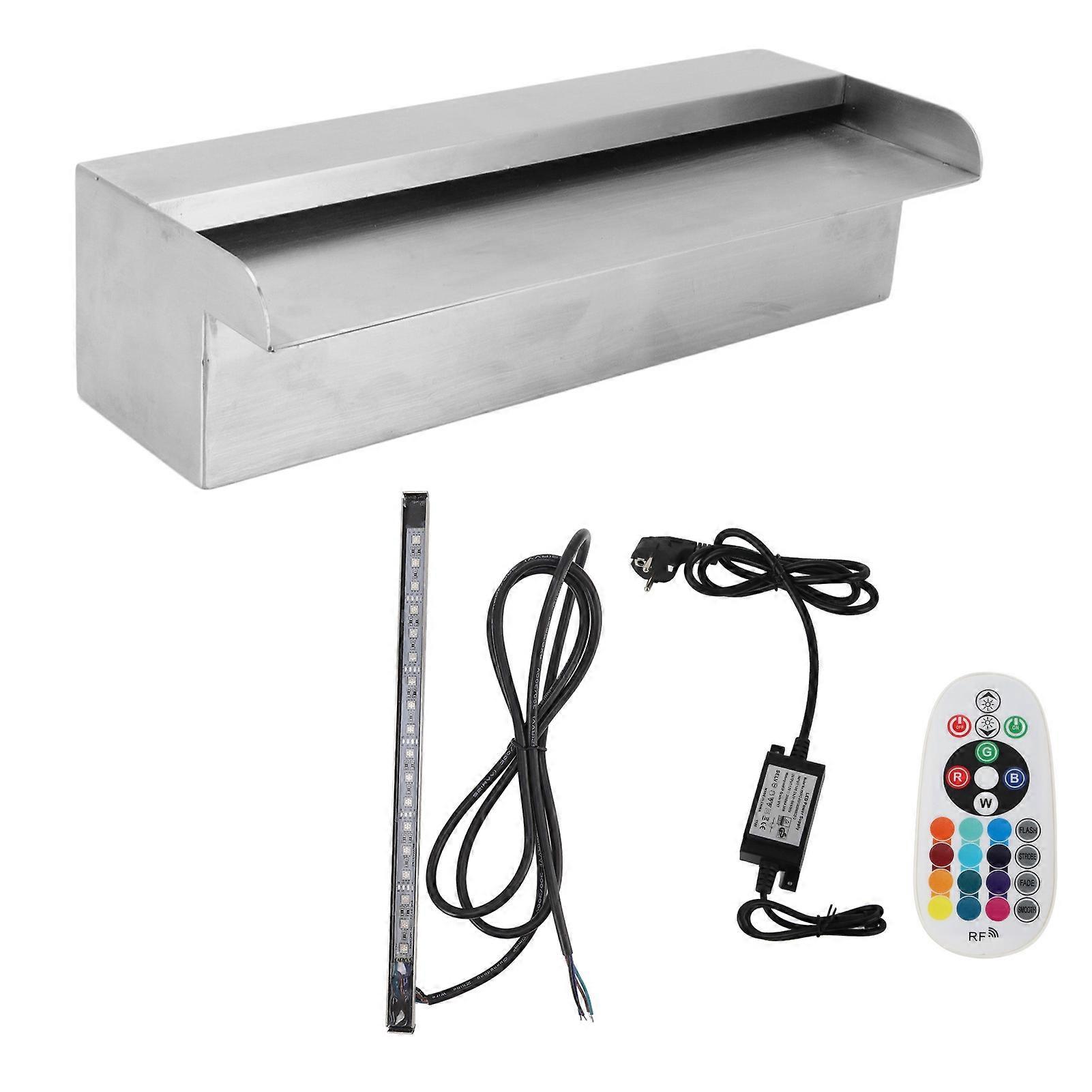 Pool Waterfall Stainless Steel G1 Thread Pool Fountain with LED Strip Light for Swimming Pool Decorations EU Plug 220V NO.0088