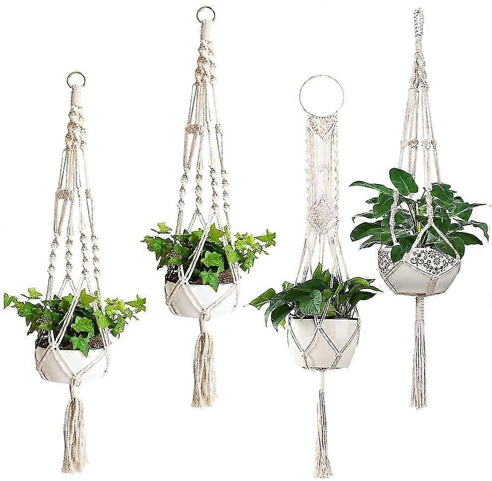 Macrame Plant Hangers, Set Of 4 Indoor Hanging Planter, Handmade Hanging Plant Holder - 43 Inch, 4 Legs