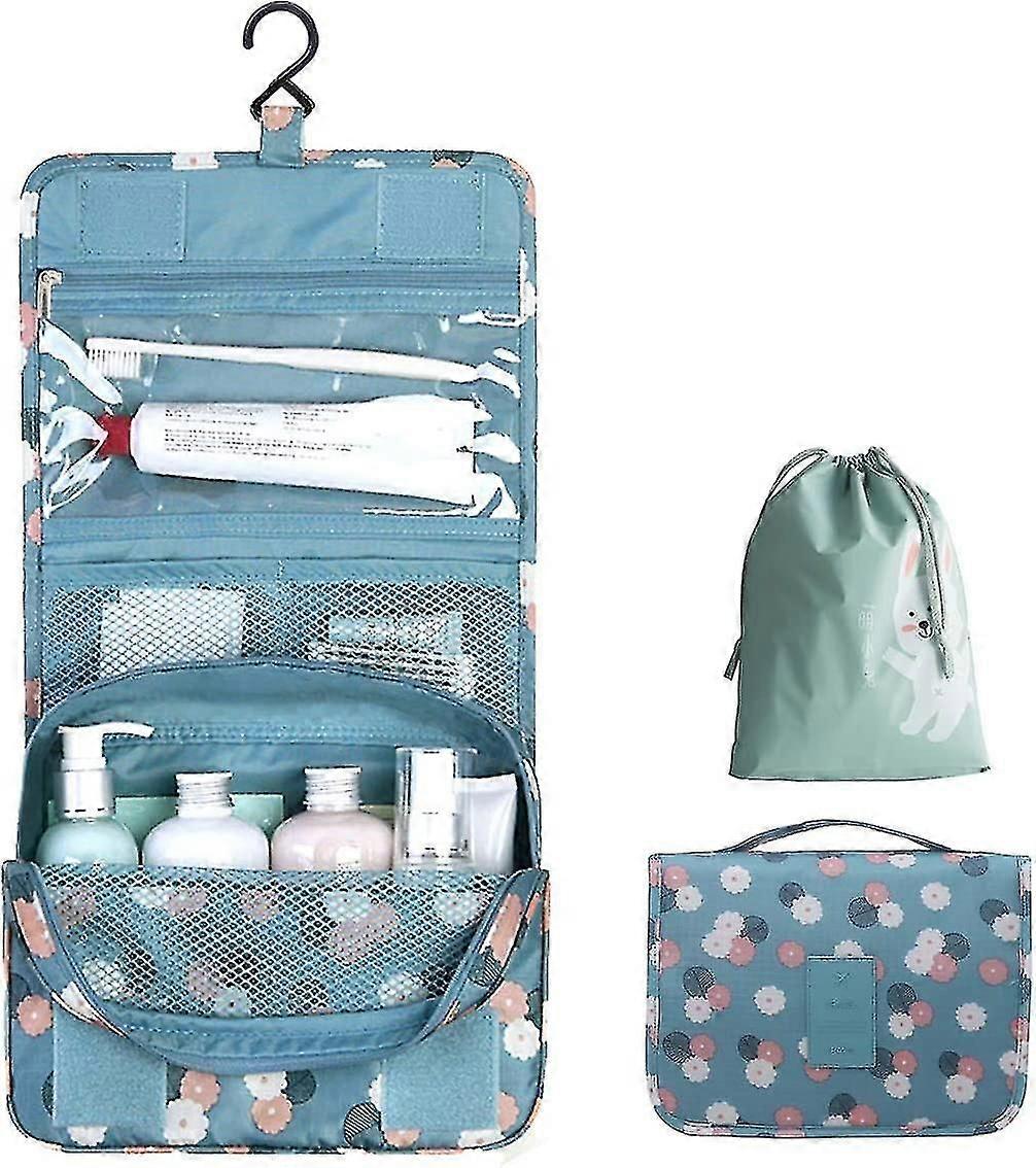 Hanging Toiletry Bag Women Ladies Wash Bag Unisex Cosmetic Bag Travel Bag With Hook For Waterproof Toiletry Bag, Blue-daisy