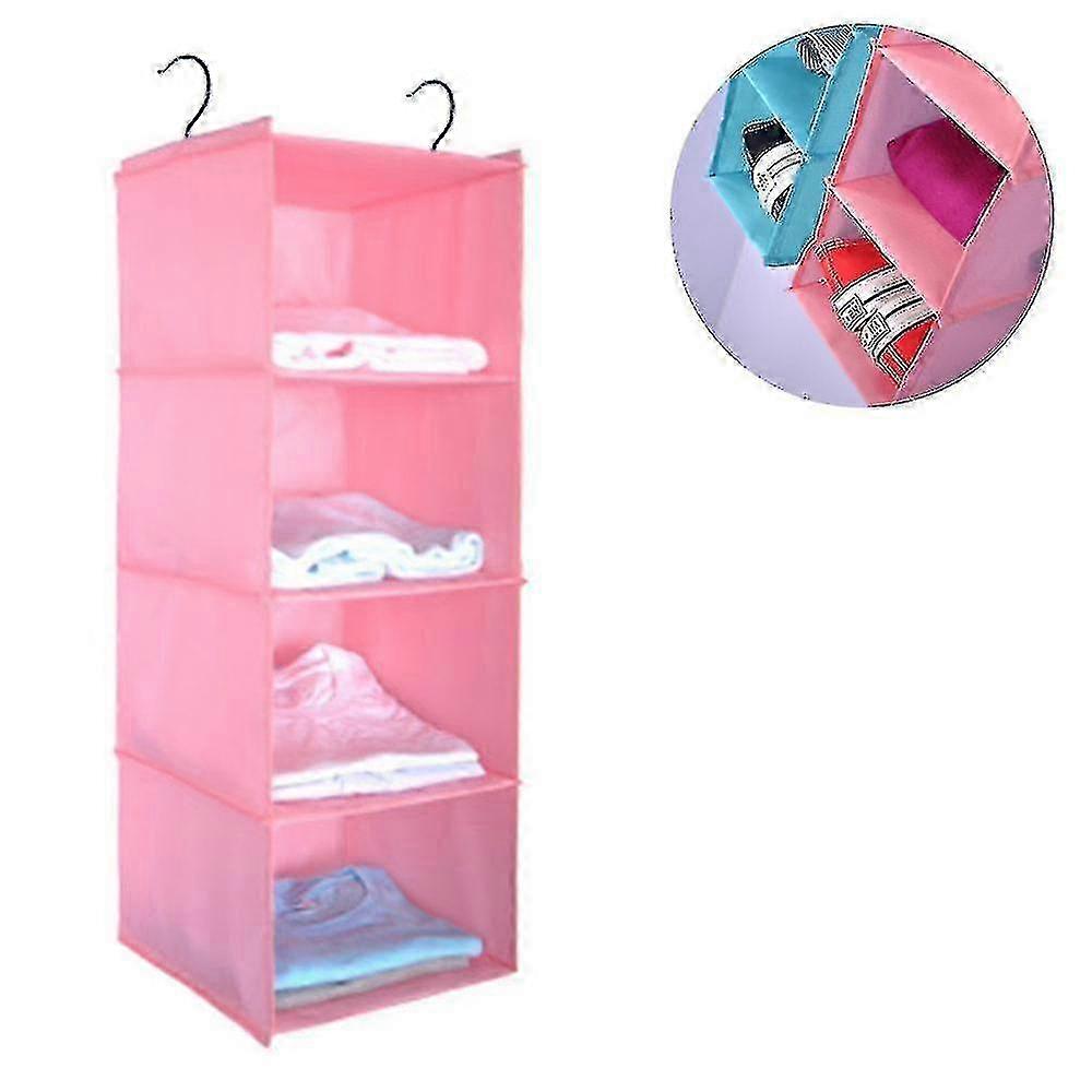 Hanging Shelf Wardrobe, 4 Compartments High Quality Cotton Camping Cabinet Organizer Hanging With Iron Frame Organizer Storage System Set