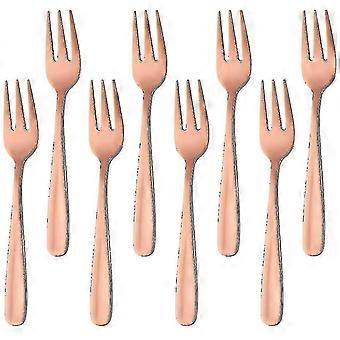شوكات الشاي شوكات حلوى صغيرة كيك شوك ستانلس ستيل أسود 8 قطع ذهبي وردي