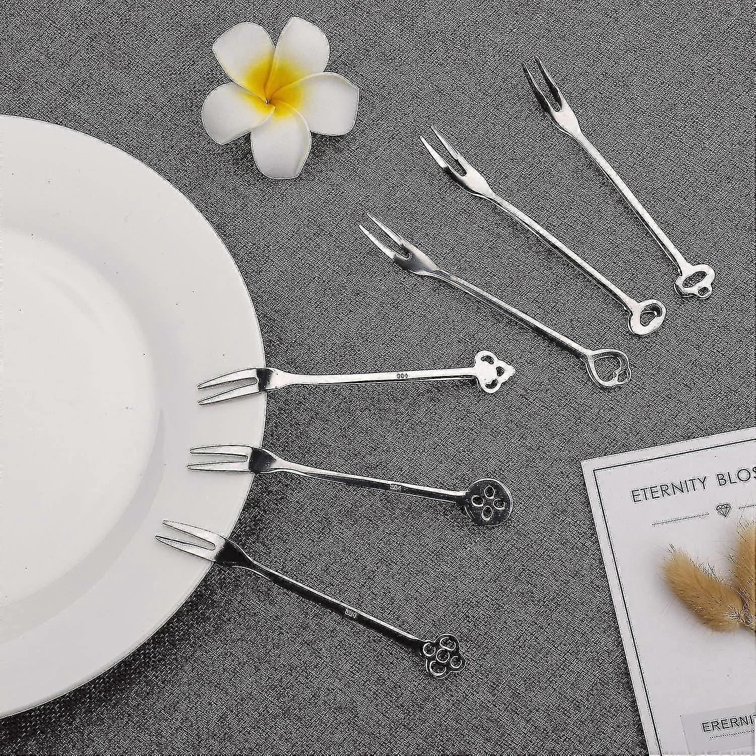 Quality material: high quality stainless steel fruit forks, with polished finish, reusable and easy to clean, dishwasher safe without harsh detergents. Widely used: Perfect for desserts, antipasti, fruits, olives, cheeses, salad vegetables, seafood, small cakes, especially for people who love fruit platters. Unique design: The kitchen cutlery handle designed with 6 different types, help users distinguish forks and reduce confusion. Perfect gift: the forks are packed in a gift box, elegant tableware can provide a great cooking experience , a perfect gift for family, friends and colleagues.