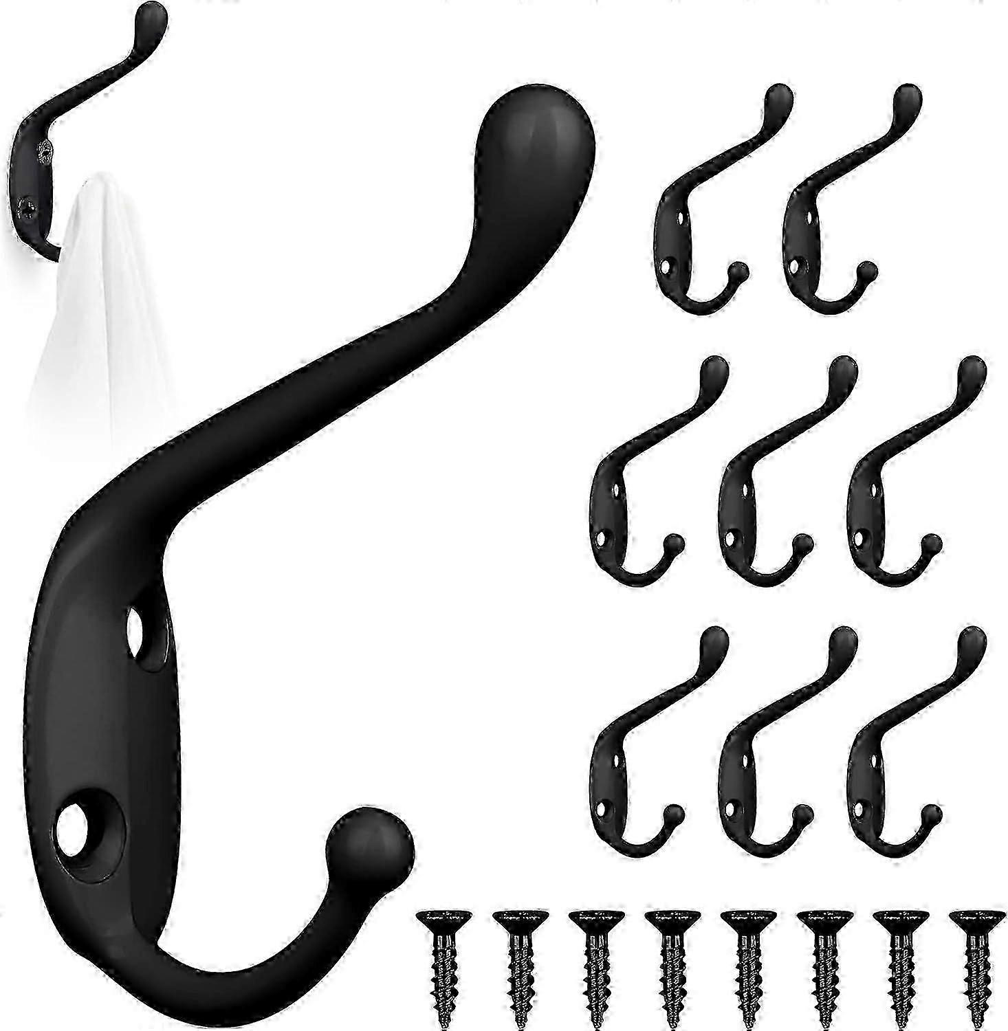 Prong Wall Mounted Hooks, 8Pcs Vintage Hooks for Coats, White Double Door Hooks with 16Pcs Screws, Metal Bathroom Hanger Hooks Clothes Hooks