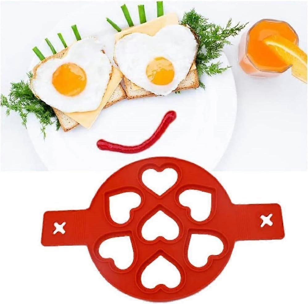 Pancake Mold Maker Fried Non-Stick Egg Mold Reusable Silicone Pancake 7 Cavity Egg Ring 3 Pack and Silicone Brush (Heart Round Star)