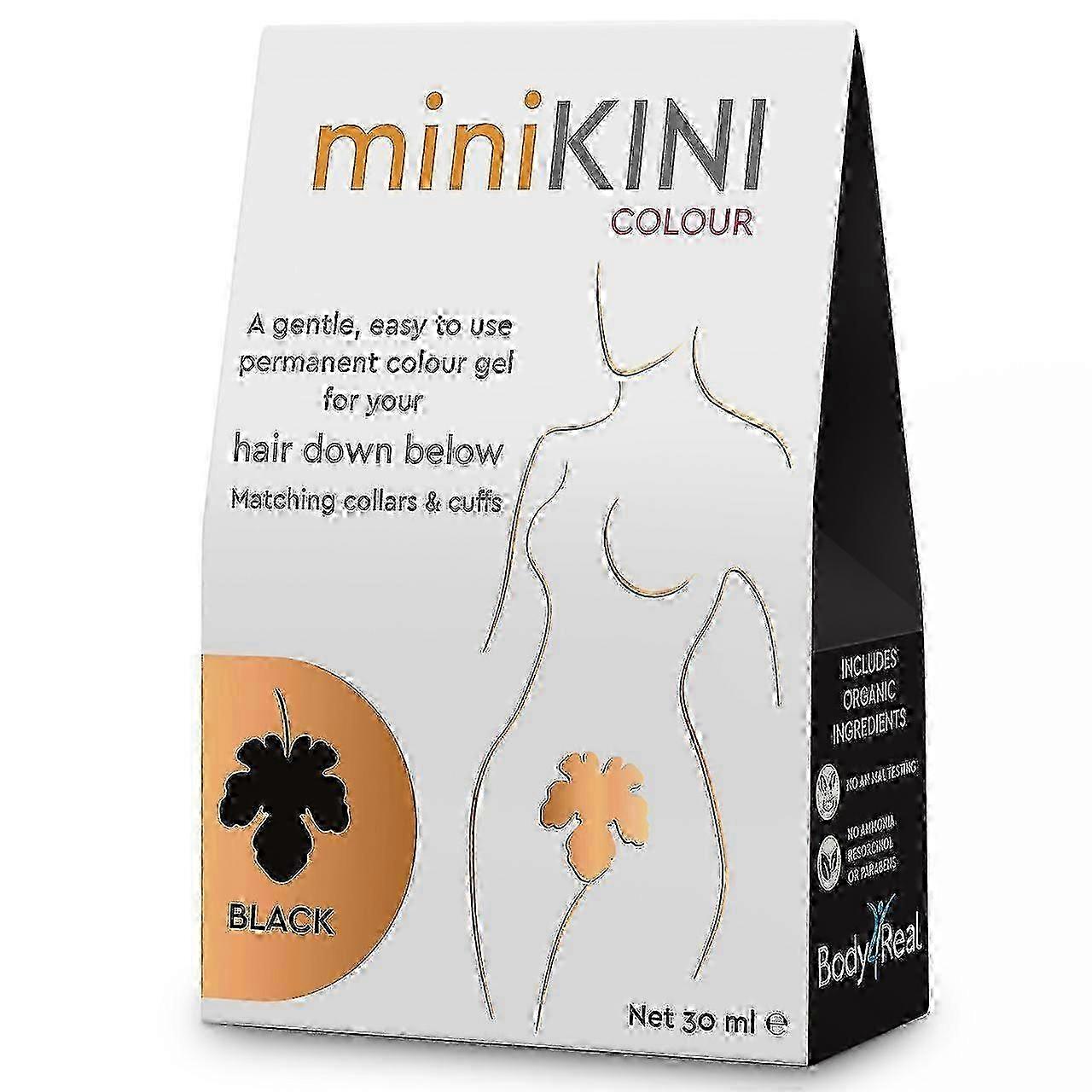 miniKINI Colour is a gentle formulation that colours pubic hairs. It is formulated for use on the bikini area. It is quick and easy to use once you have done a patch test, mix the colours and leave on for 30 minutes (full instructions included)miniKINI Colour will not only cover grey hair but this easy to use gel colour also enables women to match their hair below to their hair on top. So a natural brunette who has coloured their hair blonde can now be blonde down below. It is also suitable for men who wish to colour their beards, moustache or chest hair. So women and men of all ages can now have matching collars and cuffs. What you get:1X miniKINI Colour BLACK 30ml Note: Due to the light and screen setting difference, the item's color may be slightly different from the pictures. Please allow slight dimension difference due to different manual measurement.