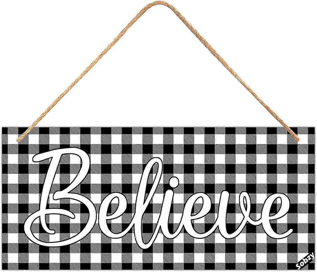Believe Rustic Wood Wall Sign - Wooden Kitchen Sign Wall Decor, Rustic Buffalo Plaid Wall Sign, Vintage Farmhouse Wooden Art