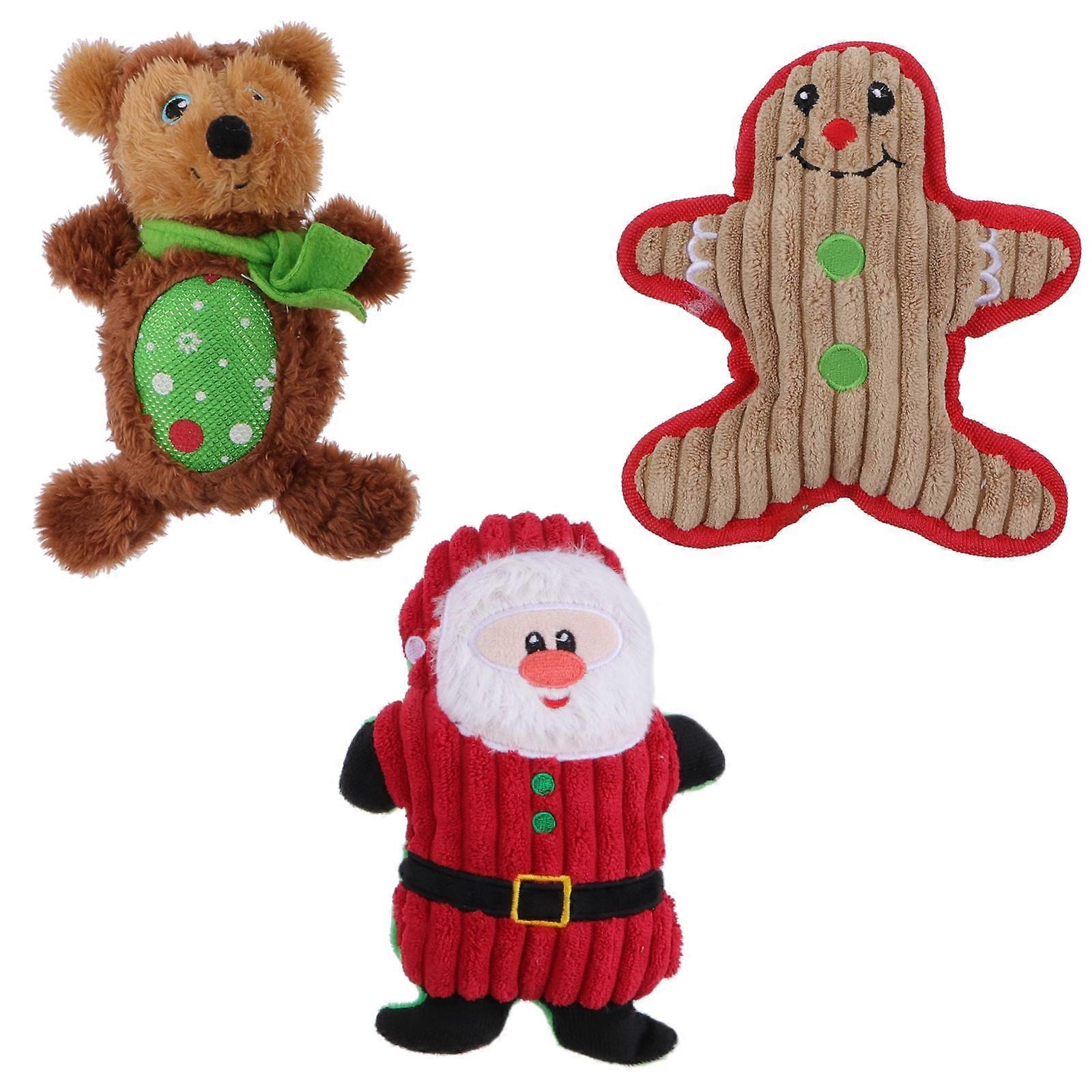 Squeaky Dog Chew Toy Plush Christmas Cartoon Shape Santa Claus 18X15cm Dental Health 3Pcs
