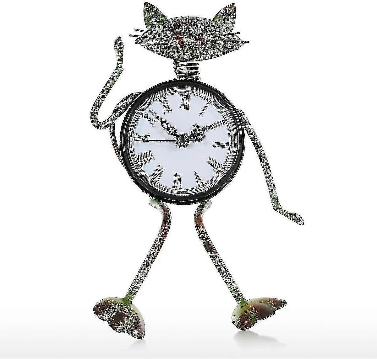 Small Cat Desk Clock Handmade Vintage Metal Cat Figurine Decorative Table Animal Clock