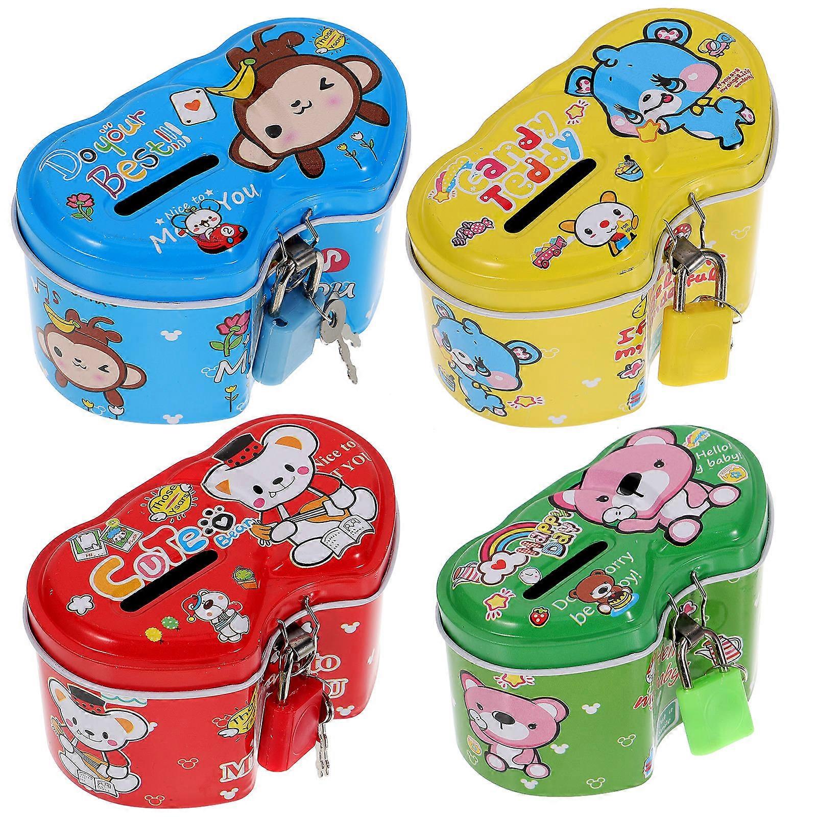 Tinplate Money Box Double Love-shaped Piggy Bank Saving Pot Assorted Color 10.00X5.00X5.00CM 4Pcs