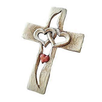 Carved Wooden Cross With Hollow Intertwined Hearts Hanging Love Couple Family Wall Decor New-Good