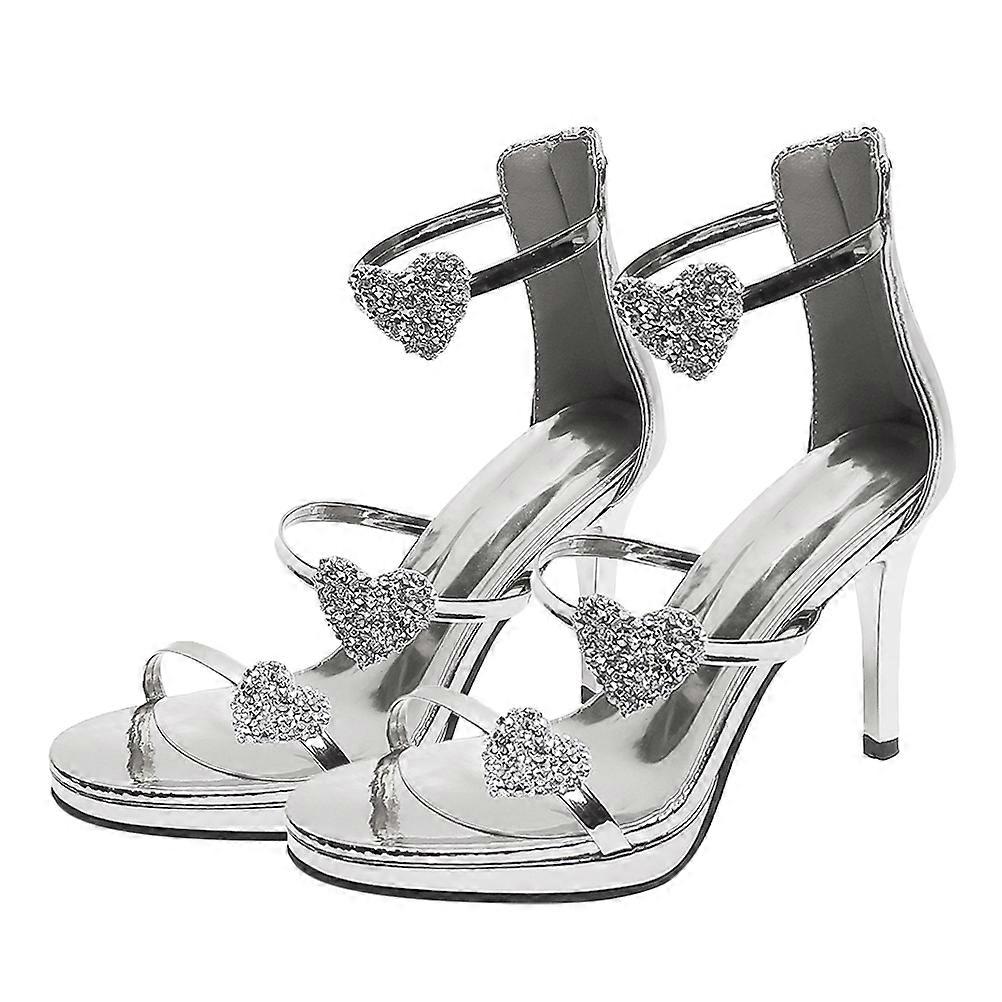 High Heels Sandals Rhinestone Inlaid Back Zipper Elegant Design Silver Size 40 1 Pair