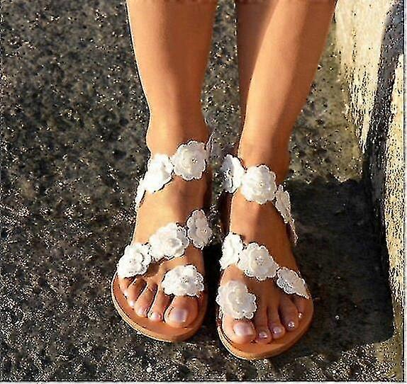 Women Lace Sandals, Dressy White Flat Sandals, Sandals, Leather Sandals