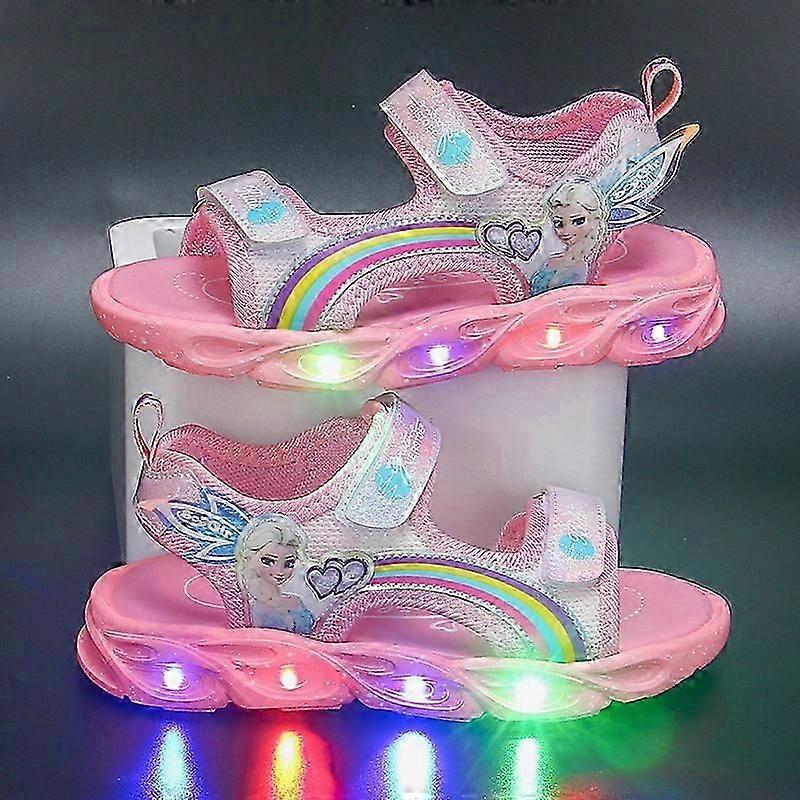 "Disney Girls' Sandals Summer Children's Led Lightweight Soft Sole Beach Shoes For Girls Children Princess Elsa Pink Shoes"