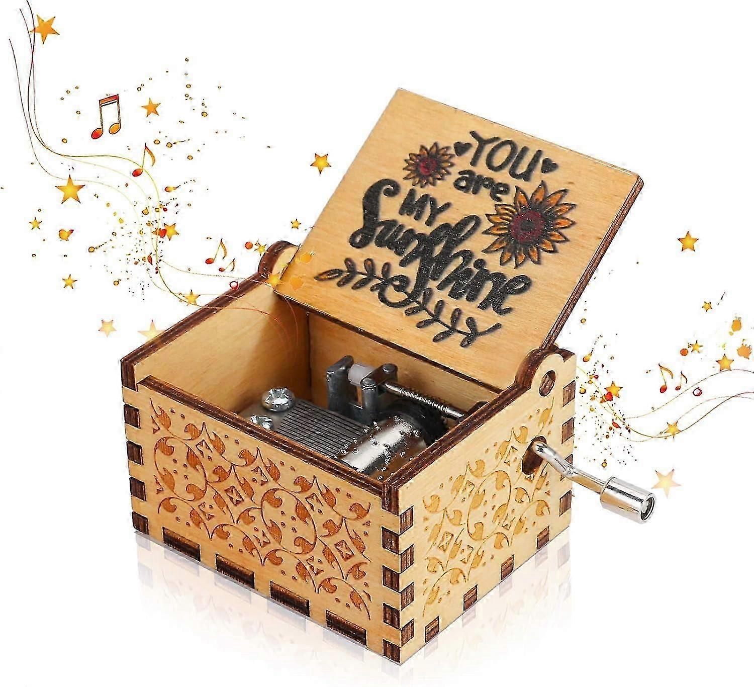Music Box You are My Sunshine Vintage Hand Crank Music Boxes Musical Box Gifts for Birthday/Christmas/Valentine's Day Home Decoration Crafts (Wood)