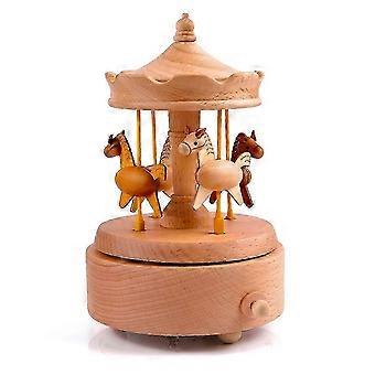 Music Box Wooden Merry-Go-Round Horse Musical Box Turn Horse Shaped Wood Crafts Birthday Gifts Home Decor