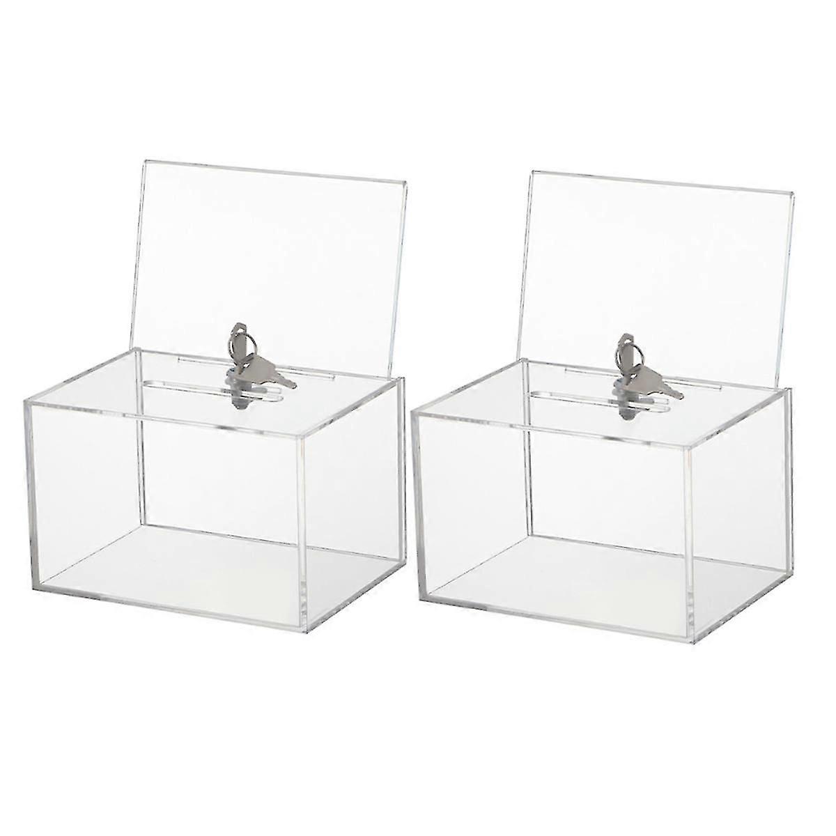PREMIUM ACRYLIC MATERIAL: Constructed using high-quality, shatterproof acrylic, this 6.25inch x 4.5inch x 4inch suggestion box promises unparalleled durability. Acrylic is , yet robust enough to resist scratches and impacts, making it a reliable option for public use. SECURED WITH LOCK: Each set includes two transparent donation boxes that are equipped with robust locks and two keys. This security feature ensures the contents remain confidential and safe, perfect collecting votes, donations, or suggestions. SEE-THROUGH DESIGN: The crystal clear acrylic material ensures total visibility, offering optimal transparency. This feature is essential to maintain fairness and integrity when is used for voting or collecting suggestions, allowing participants to see that their entries are secured within. INCLUDES SIGN HOLDER: Featuring a removable clear sign holder, this box can be personally customized for different events. Its versatile design allows it to be easily noticeable, adapting seamlessly to occasions or campaigns. VERSATILE USAGE: An indispensable tool for gathering votes, raffling tickets, receiving feedback, or supporting fundraisers. Whether used in classroom votes, office feedback collection or charity functions, this Acrylic Donation and Ballot Box serves a multitude of purposes across diverse settings. The actual product may have slight color difference or difference, which will not affect the use Colour:Transparent Material:Acrylic Package Contents: 2x voting box with lock Only the above package content, other products are not included. Note: Light reflection and different displays may cause the color of the item in the picture a little different from the real thing. The measurement allowed error is +/- 1-3cm.