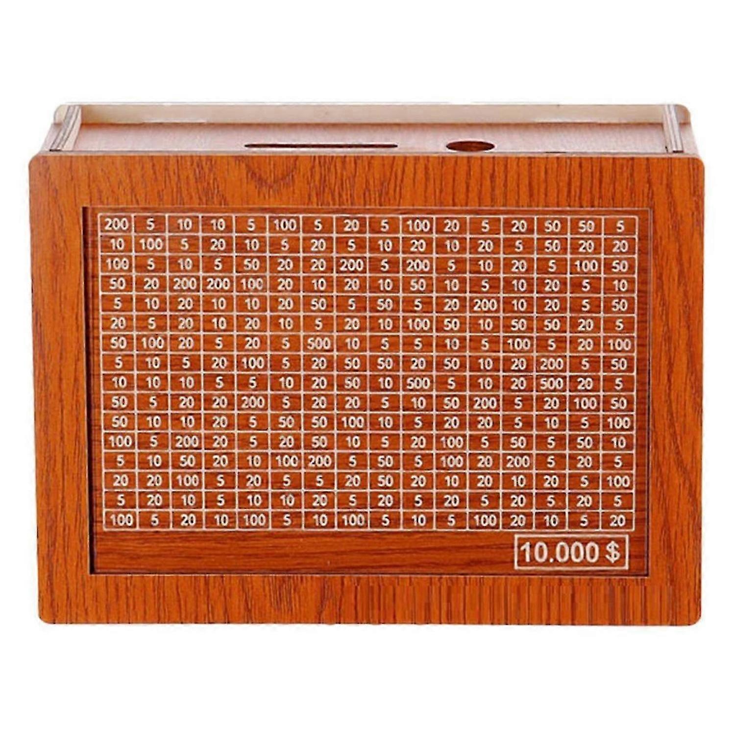 Money Saving Box, Wooden Cash Vault for Kids and Adults, Reusable Money Box with Countdown and Money Target, Challenge E
