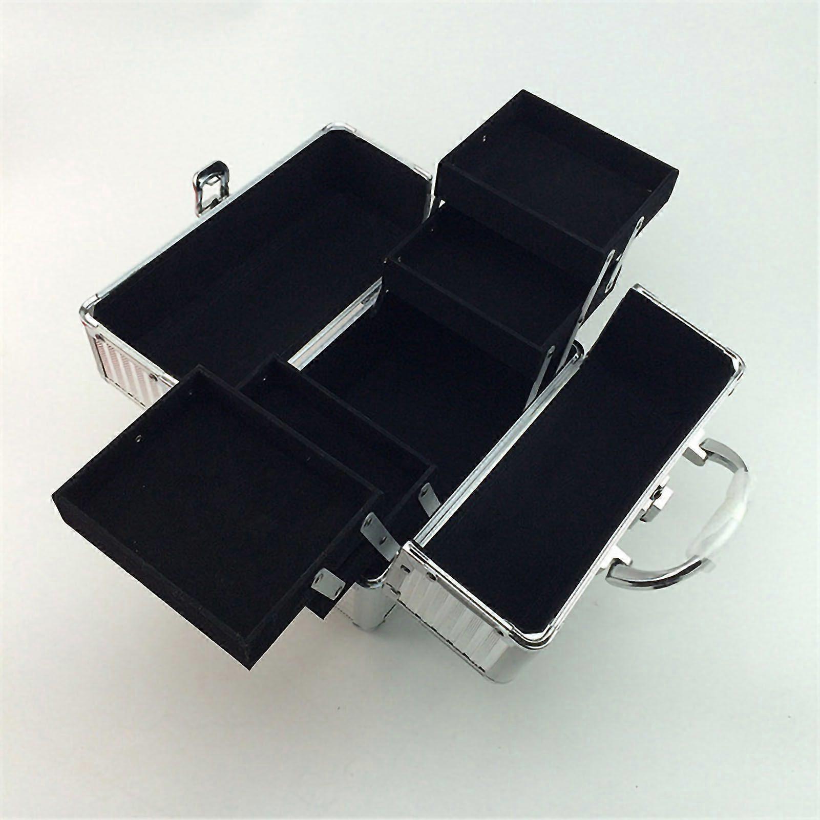 Makeup Case Cosmetics Carrying Box 25x17x17cm Large Capacity Storage for Home Salon Silver Strip Black Bottom