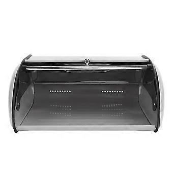 صندوق خبز معدني رمادي من الحديد مع نافذة 34.5x23x14.5 سم تخزين المطبخ