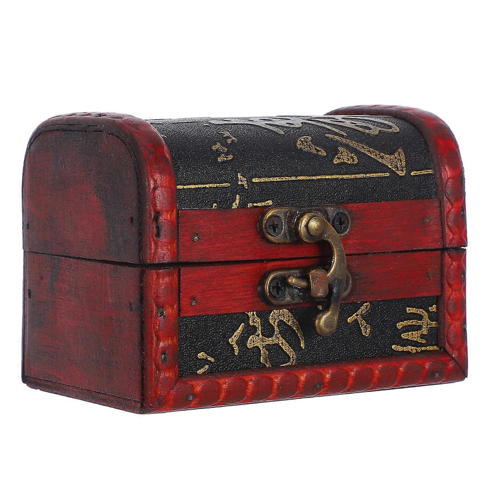 Retro Treasure Chest Box for Jewelry with Metal Lock Crafted from Wood and PU in Light Brown 3 Inch
