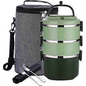 صندوق غداء قابل للتكديس ، صندوق غداء بينتو حراري من الفولاذ المقاوم للصدأ من 3 طبقات مع حقيبة غداء وأواني (أخضر ، 3 طبقات)