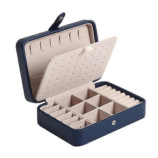 Jewelry Box Leather Double Layer Travel Storage Case Organizer Dark Blue