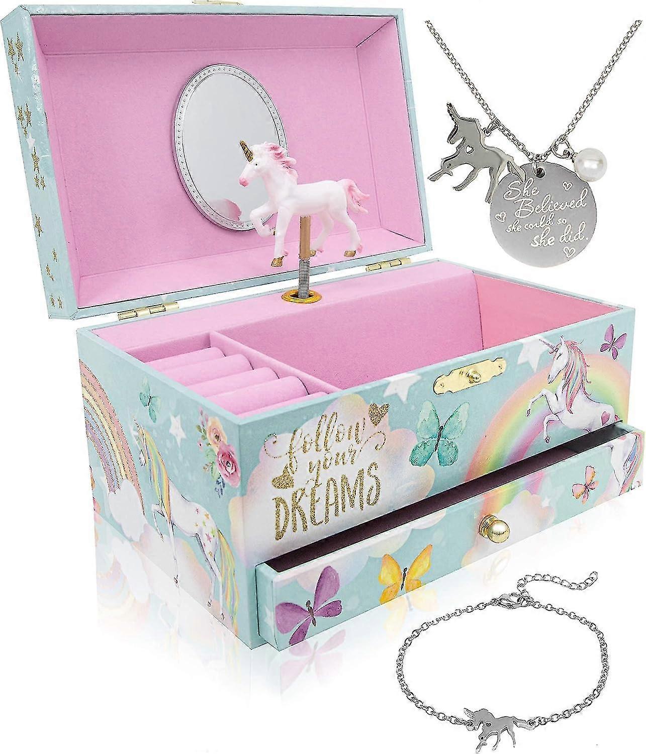 Unicorn Jewelry Box For Girls & Boys - Musical Girls Jewelry Organizer Box - Granddaughter Gifts For 8-year-old Girls
