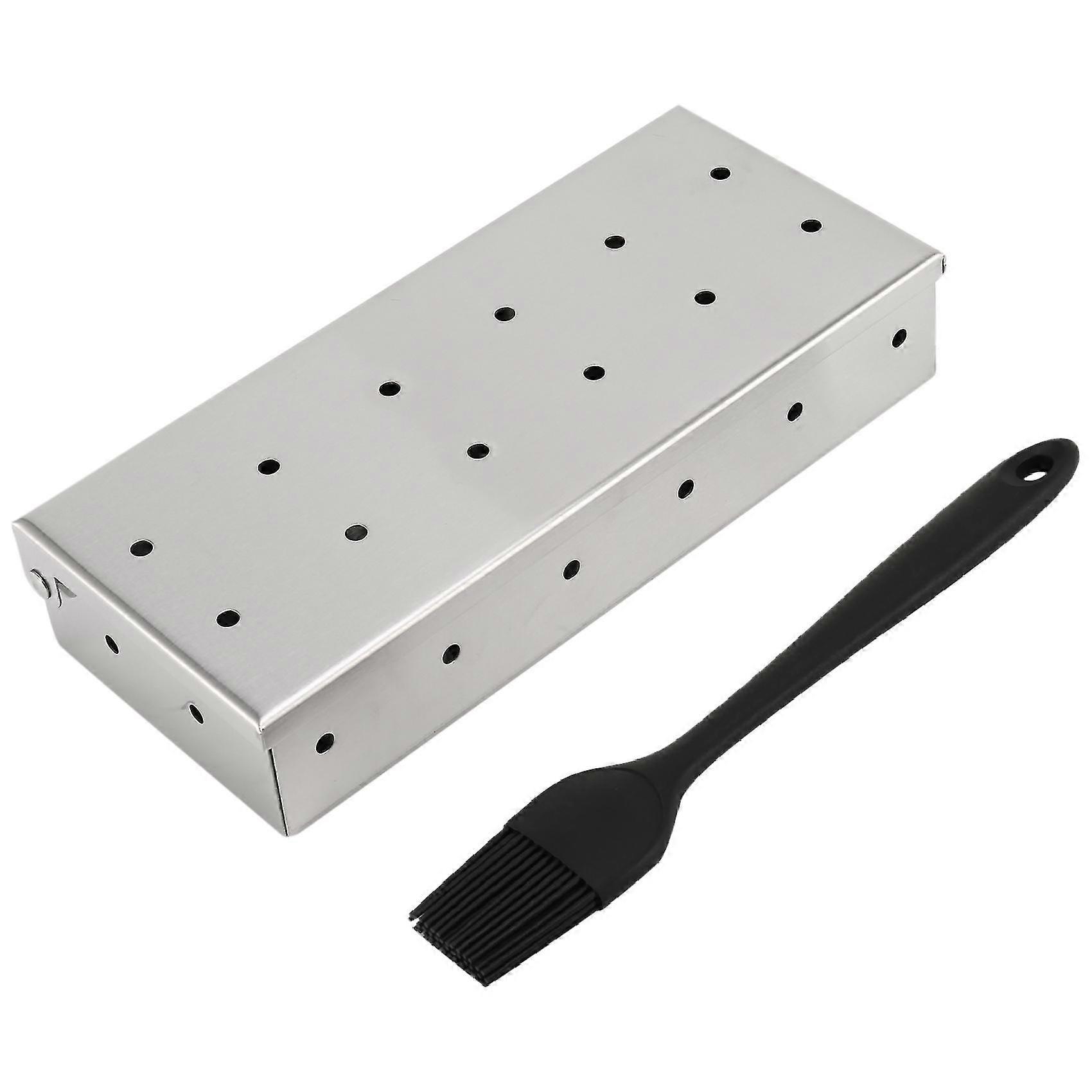 Large Smoker Box For Bbq Charcoal &gas Grill Box With Brush Large Capacity Wood Chip Box For Smoked
