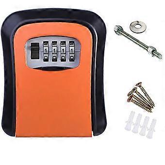 Key Box Wall Mounted 4 Digit Aluminium Alloy Simple Safe Key Lock Box for Site Apartment Factory Orange