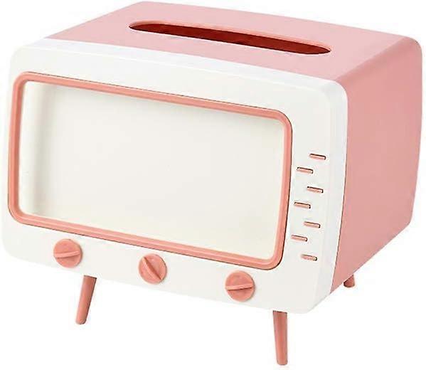 tissue box, cute, vintage, TV shaped remote control rack, phone stand (pink) yCD