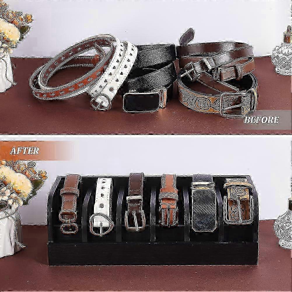Bamboo Belt Organizer Box with 6 Dividers Belt Rack Container Storage Holder Wooden Display Case for Belts Versatile Display Holder Fit for Wall Close