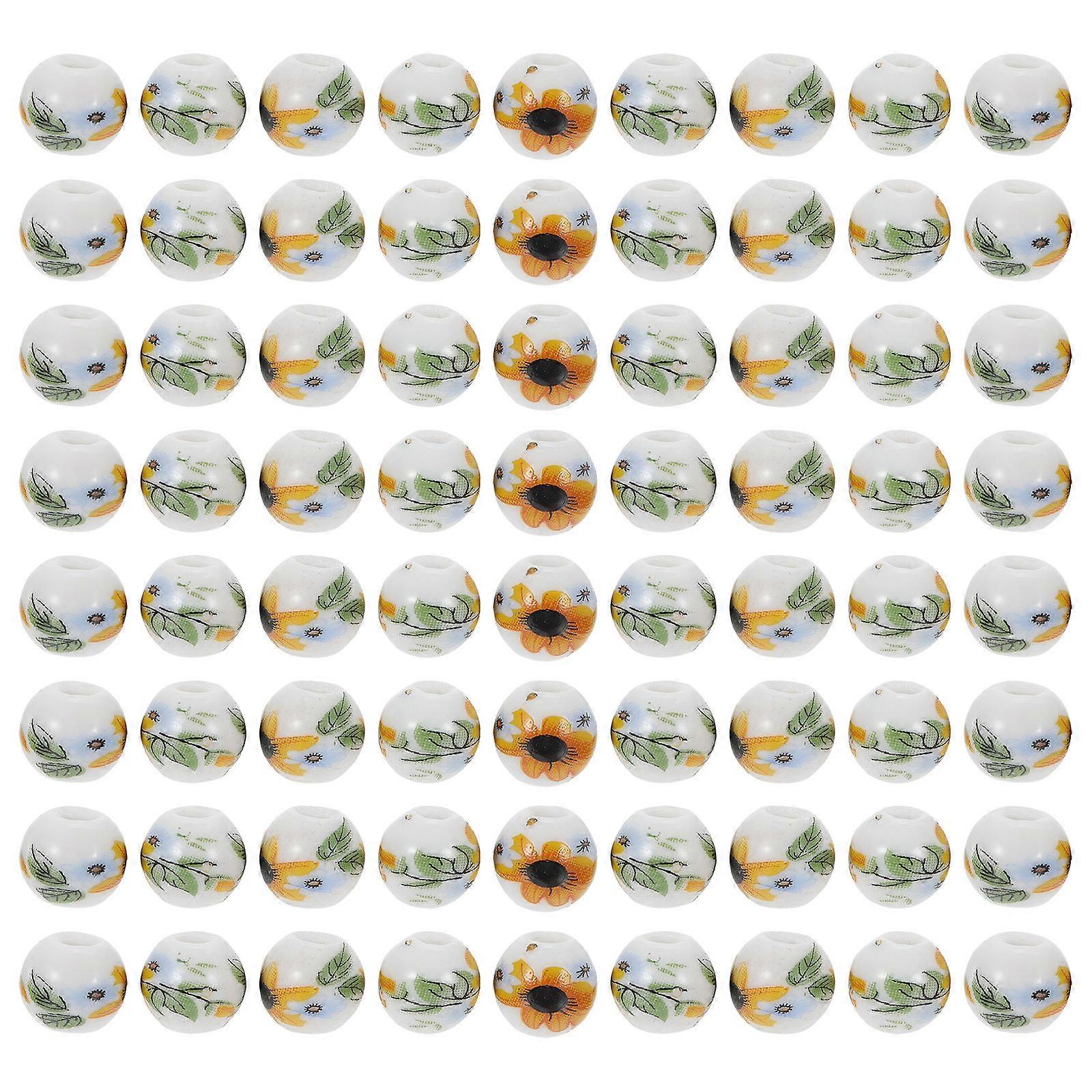 Jewelry Making Beads 100Pcs Floral Ceramic Round Beads For Crafting Activities 1x1cm Chic Design Durable