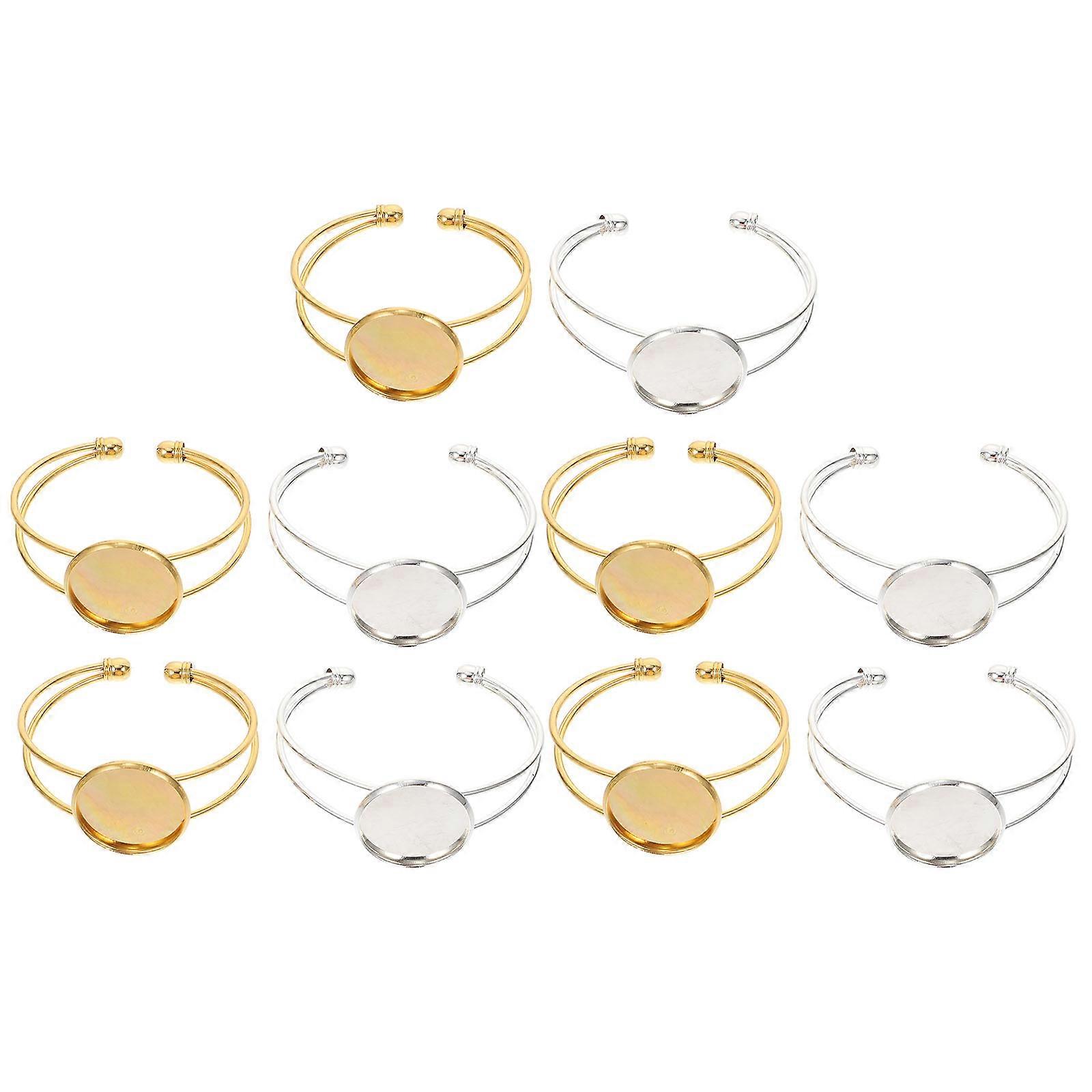 Adjustable Bracelet Trays Jewelry Base Diy Making Round Shape Silver Color 5.50X5.50X2.50cm 10Pcs