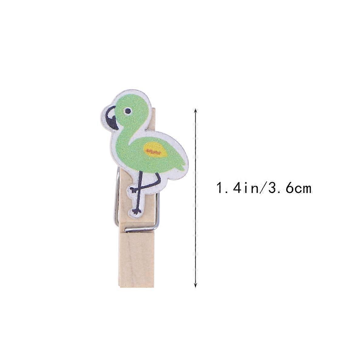 Photo Clips Wooden Pegs for Photo Holding 10Pcs with Cartoon Flamingo Pattern