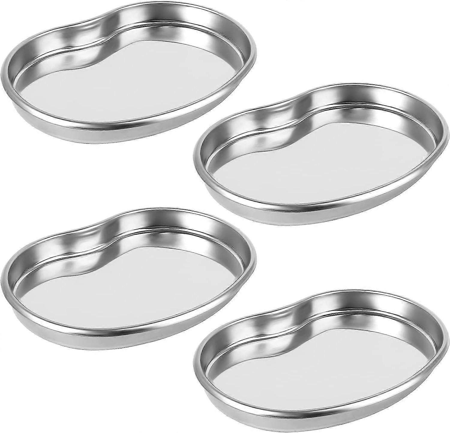 Small Instrument Tray, Stainless Steel Laboratory Tray Metal Kidney Dish Curved Instrument Tray for Tattoo Lab Tools (21x14x2.1cm)4 Pieces