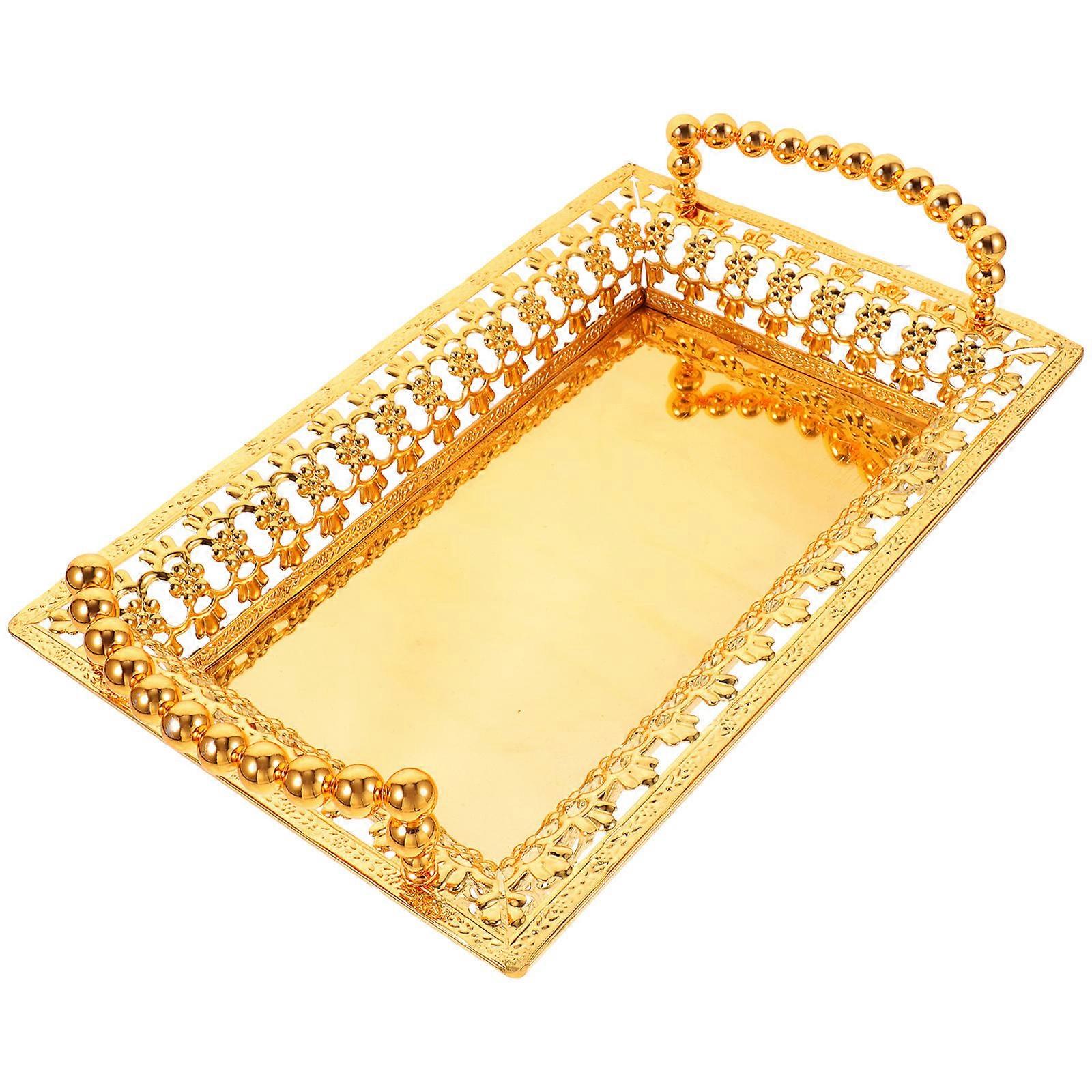 Golden Iron Snack Storage Tray with Handle for Fruits and Candies 7.87 x 5.90 Inches