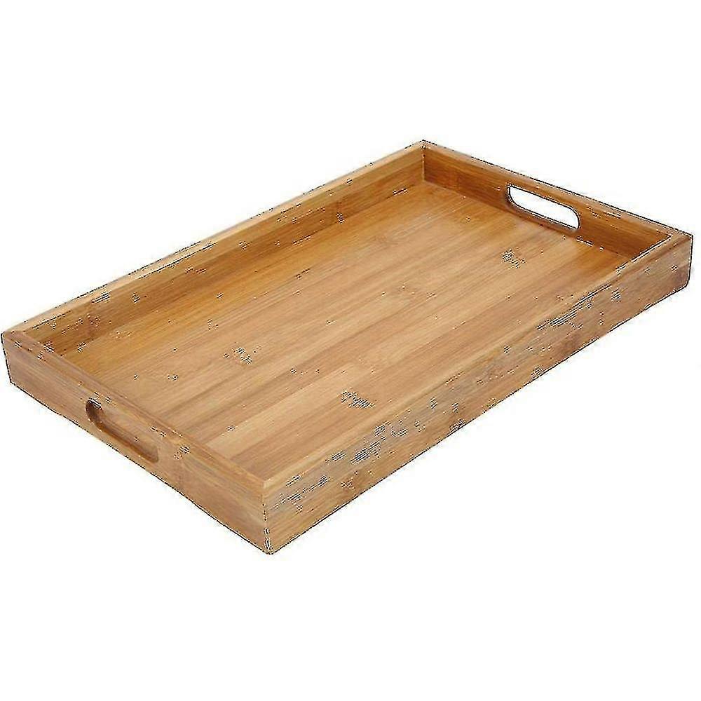 Bamboo Serving Tray, Rectangular Display Wooden Afternoon Tea Tray With Handles For Kitchen Party Dinner Snack