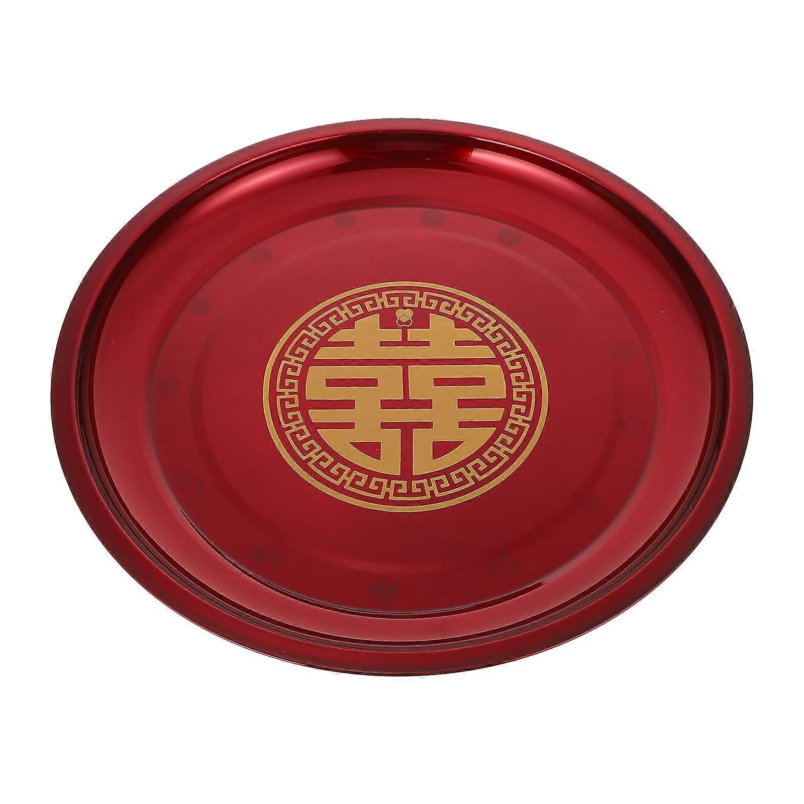 Wedding Serving Tray Chinese Style Serving Tray Wedding Party Supplies Red Stainless Steel for Storage 1Pc