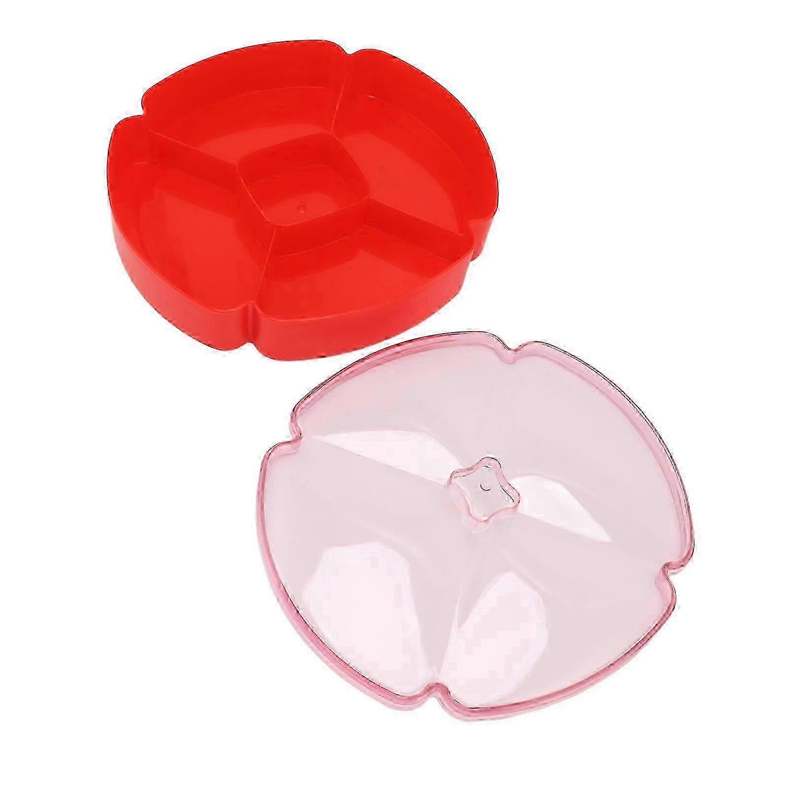 Snack Serving Tray Round Plastic Fruit Nut and Candy Compartment Plate with 5 Section for Thanksgiving Chinese New Year Red