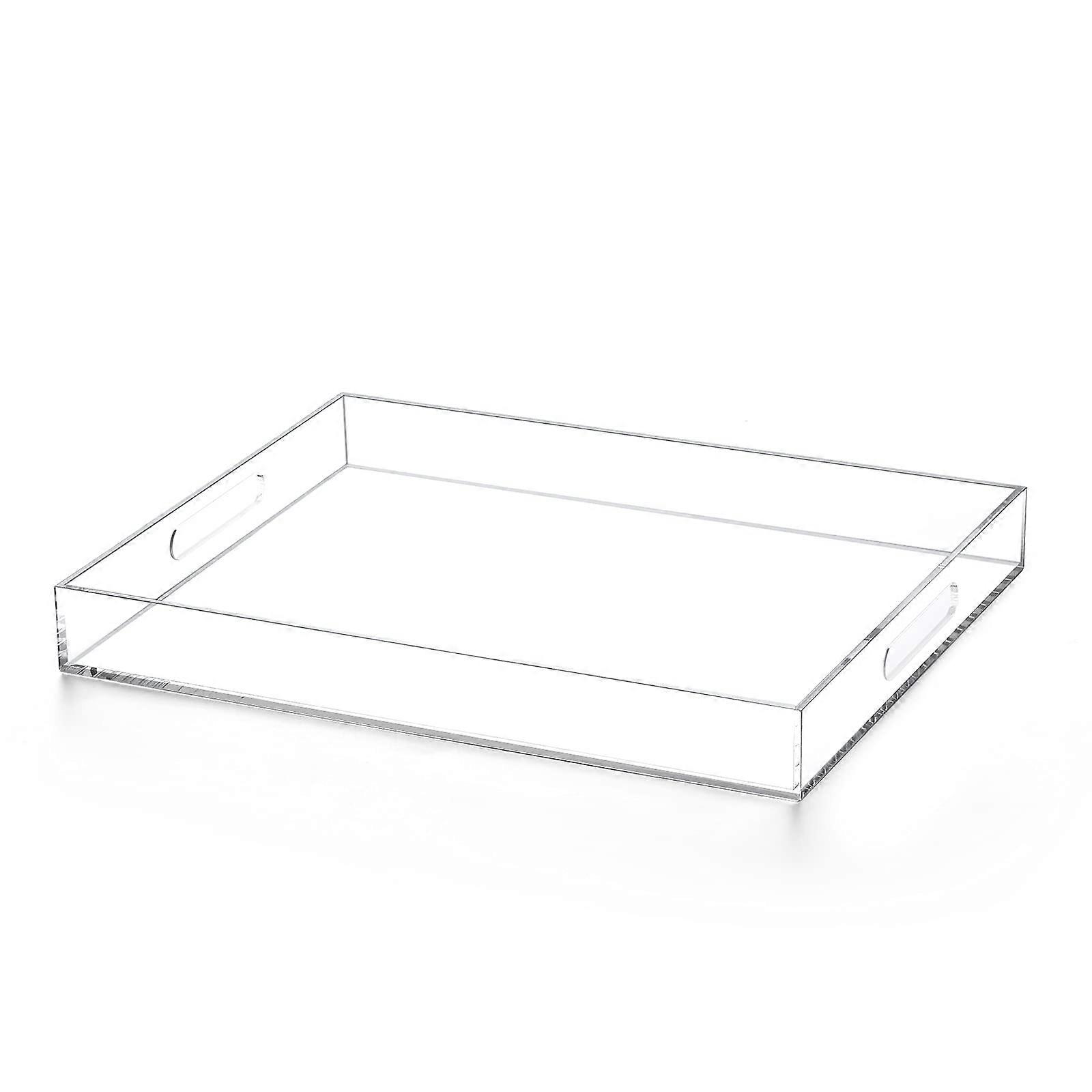Modern Acrylic Ottoman Tray 11x14 Inch for Living Room, Clear Decorative Serving Tray for Coffee Tables and Home Decor