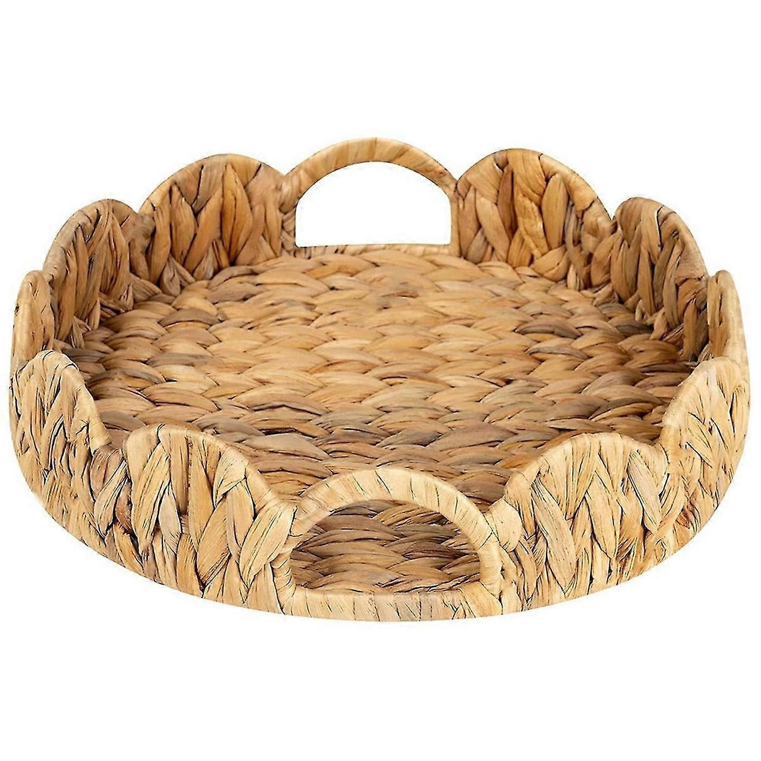 Scalloped Edge Round Tray, Round Serving Tray with Built-in Handles, Decoratve Tray for Coffee Table