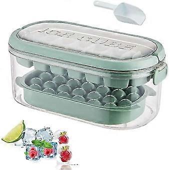 Ice Cube Tray with Lid and Bin, Sphere Ice Cube Maker Ice Cube Trays for Freezer, 2 Tiers Ice Cube Moulds Square and Round Ice Tray