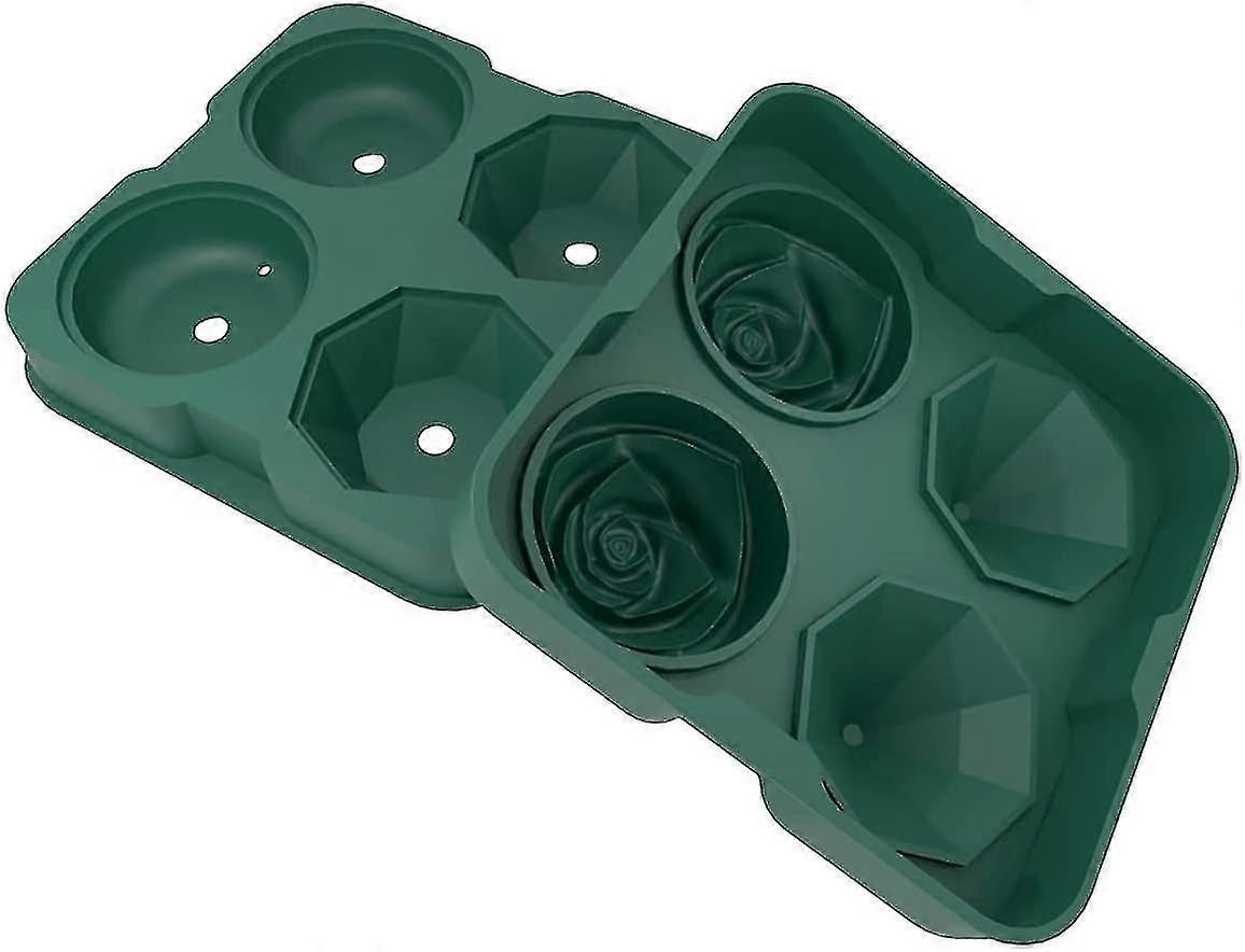 Ice Cube Tray, 2.5 Inch Ice Cube Silicone Molds, 2 Cavity Rose & 2 Diamond Ice Ball Maker