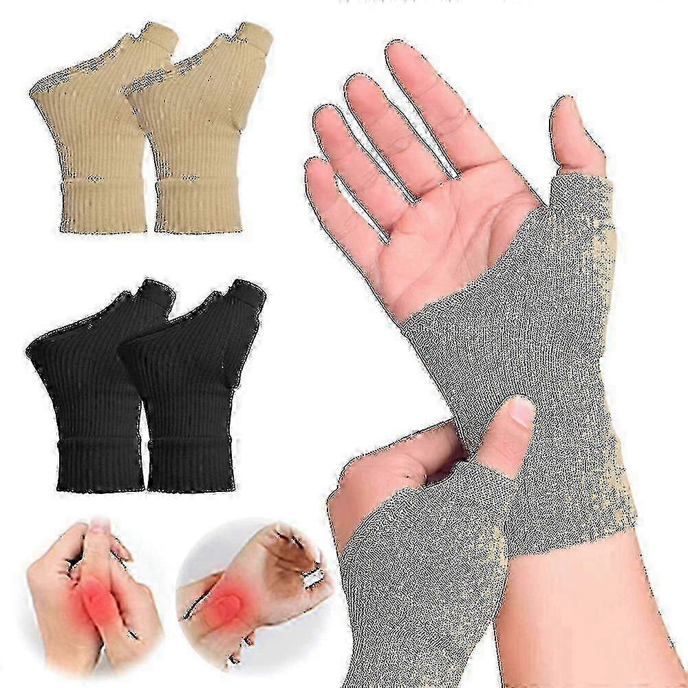 Therapy Gloves Gel Filled Thumb Hand Wrist Support Arthritis Compression for Thumb Arthritis, Carpal Tunnel, Tenosynovitis for Men and Women Fits Both HandsPackage included:1 Pair ofTherapy Gloves Feature:Designed to be a very tight fit, they are ideal for people who suffer from arthritis, rheumatism or general hand pain.Provide warmth, compression, and pain relief from thumb injuries such as Arthritis, Skier's Thumb, Thumb Ligament Injuries, Sprained Thumb.Beneficial for sports such as rugby,tennis,badminton etc, where damage is caused to the Metacarpophalangeal (MCP) joint of the thumb, or the Radio (IP) Carpal joints of the wrist.One size fits most, stretch fit, can easily be worn under gloves, without excess bulk, suitable for both men and women.Made of high quality material, elastic, breathable and durable. Easy to clean, wash and dry with your clothes every few days to keep them fresh and long-lasting. Note: Due to the light and screen setting difference, the item's color may be slightly different from the pictures. Please allow slight dimension difference due to different manual measurement.