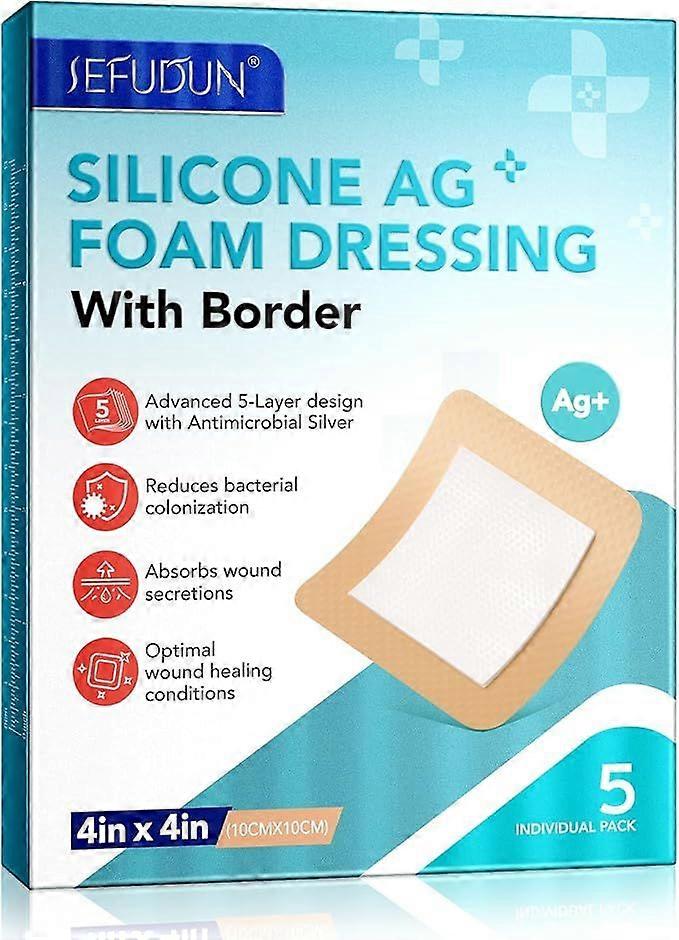 Silicone Foam Dressing Ag Sterile Wound Bandage with Waterproof Gentle Silicone Adhesive Border, 4"x 4" Breathable Ultra Absorbent Pads