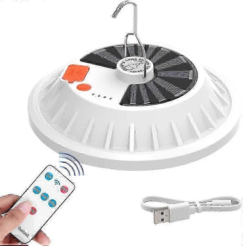 Solar Camping Light, 120 LED Hanging Camping Lantern with Remote Control, IP65 Waterproof Rechargeable Tent Light, 5 Modes 1200mA Portable USB Charger
