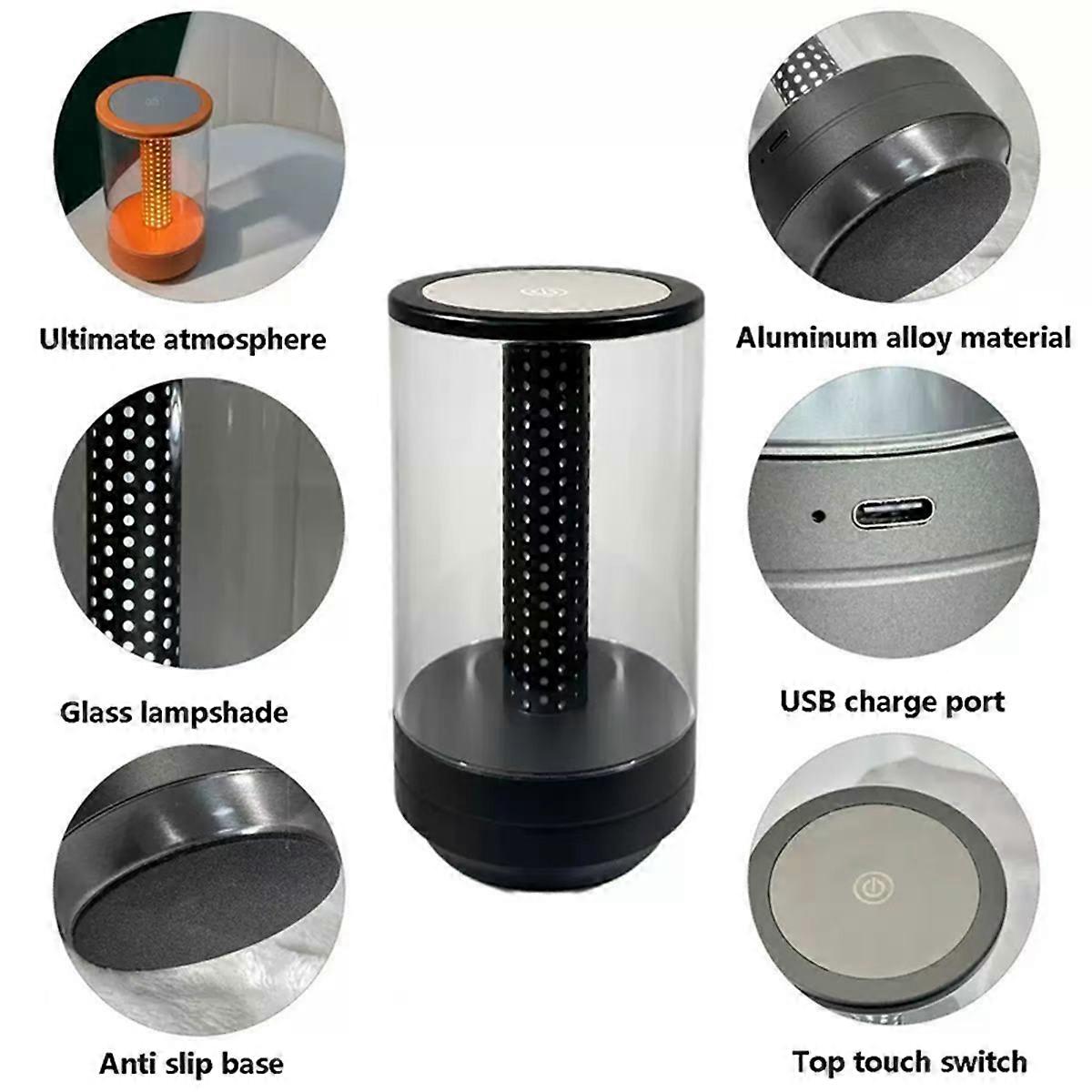 Enhance Your Space: Create a warm and inviting atmosphere with our Portable LED Candlelight Lamp. Ideal for romantic dinners, cozy bedside illumination, or as a charming light source during outdoor adventures. Versatile and Convenient: This lamp is designed for both indoor and outdoor use, making it perfect for any setting. Its portable design and rechargeable feature allow you to bring a soft glow wherever you need it. Energy-Efficient Lighting: Equipped with energy-saving LED technology, the lamp provides a gentle light that is both beautiful and cost-effective. Color: orange Material: Aluminum alloy + glass Package Contents: 1 x Outdoor camping candle table lamp Only the above package content, other products are not included. Note: Light reflection and different displays may cause the color of the item in the picture a little different from the real thing. The measurement allowed error is +/- 1-3cm.